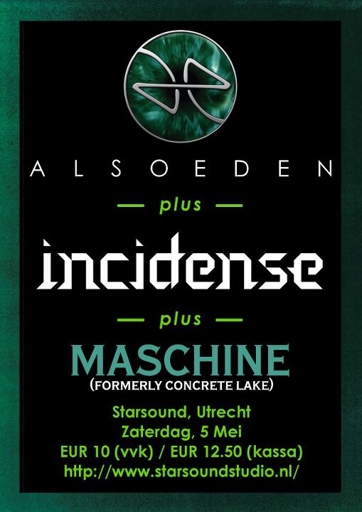 After the release of their EP Differences As Light (see review) in 2010, the British band Also Eden intended to tour in Europe and to work on a full-length album. However, none of these intentions could be realized because their new singer Rich Harding had a serious motor cycle accident. Thank God he survived and the band could record and release Think Of The Children! (see review) in 2011 after all. Unfortunately live performances abroad could not be realized, but the good news is that they gave two concerts in The Netherlands: one in Utrecht and the other one in Zaandam. I attended the Utrecht-gig which brought back memories, because they had already played at the Starsound Studios in 2009 together with Dutch bands Silhouette and Flamborough Head (see review). This time they were accompanied by the British outfit Maschine and the Dutch formation Incidense, two rather young bands. Maschine I guess that just a few people are familiar with Maschine (formally known as Concrete Lake), albeit two members of this band also participate in The Tangent, currently one of the greatest British progressive rock bands. Guitarist Luke Machin and bassist Daniel Mashal started Maschine together. The name is a composition of their surnames.