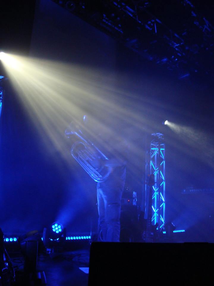 in the venue I noticed that the stage was full of instruments (guitars, cello, tuba). The drum kit was on the