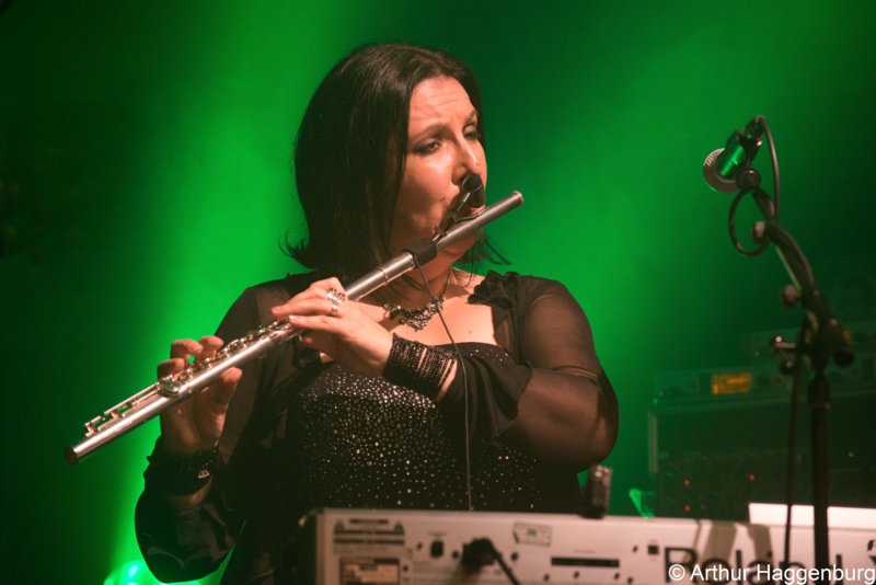 All those songs proved that the current line up can do perfect live renditions of old and new material. Bryan Josh still can play excellent guitar solos next to doing fine lead and backing vocals. I guess good old Andy Smith never stops playing the bass in the band, and moved around the stage like in the days when female singer Heather Findlay was still a band member. Her replacement Olivia Sparnenn has a golden voice and occasionally played on the tambourine, xylophone and recorder to give some extra musical flavour to the songs performed. Drummer Henry Rogers can be found in many bands nowadays. So he has to learn a lot of musical parts. Well he managed the right rhythms for the old and new compositions the band came up with. I can't imagine a Mostly Autumn without Iain Jennings on the keyboards. He is just part of the household effects of the band. Playing emotional piano parts next to grand synthesizer chords the best way possible. It's great to see Angela Gordon back on stage with the band, playing the flute and whistle, next to some additional backing vocals and keyboard parts. Finally, what to say about Chris Johnson. I think he can be seen as the perfect replacement for Liam Davison, who died much too soon in November 2017. On stage he even resembled Liam by wearing the same kind of blouse and playing on the same kind of guitars. Even his long hair, moustache and beard made him look like Davison. He is certainly a great addition to the band.